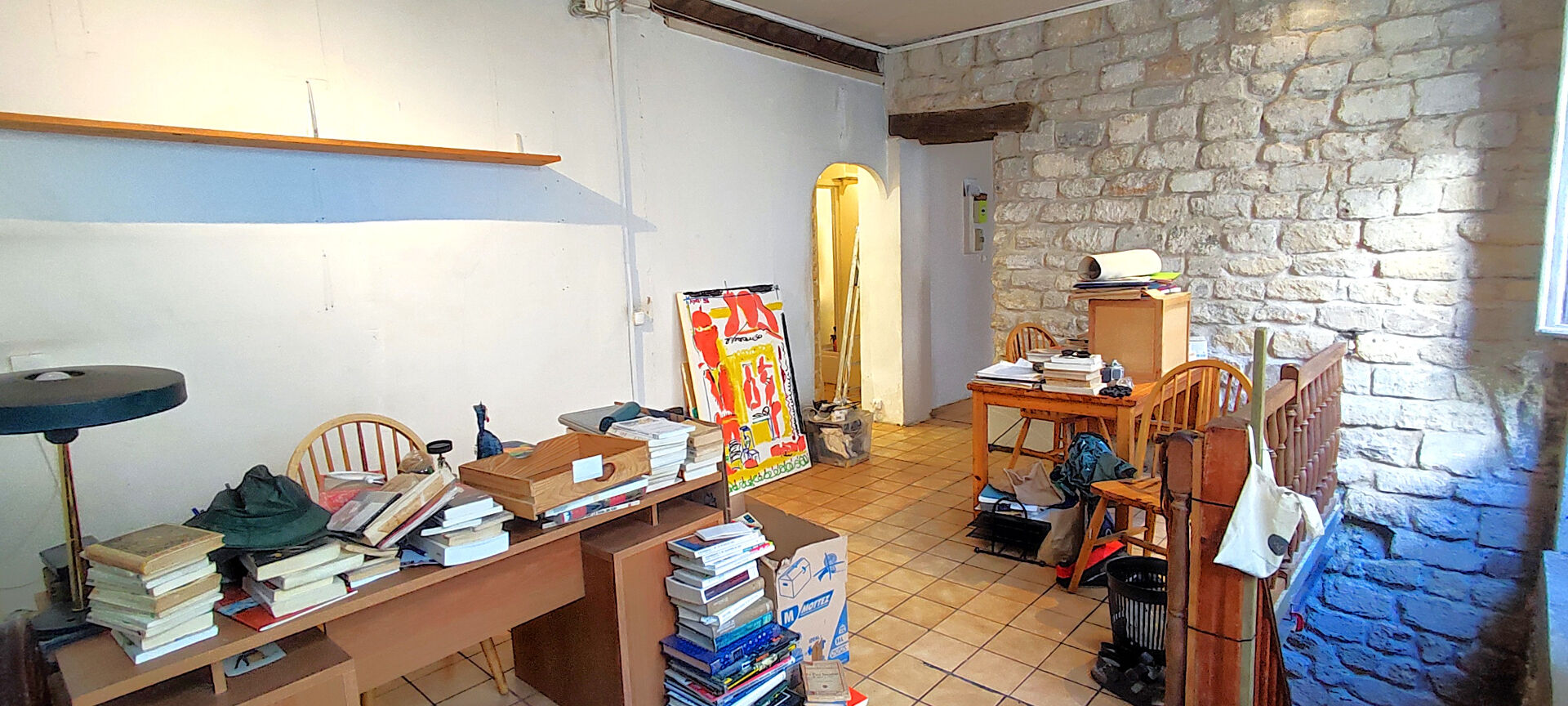 À rafraichir, il possède néanmoins beaucoup de cachet (poutres apparentes et murs en pierres de Paris) et de nombreux atouts : deux entrées distinctes, une accessible directement par la rue et la seconde par les parties communes de l'immeuble, une grande luminosité de part sa belle hauteur sous plafond de 3m20 et ses grands ouvrants exposés ouest donnant sur la cité de la mairie.