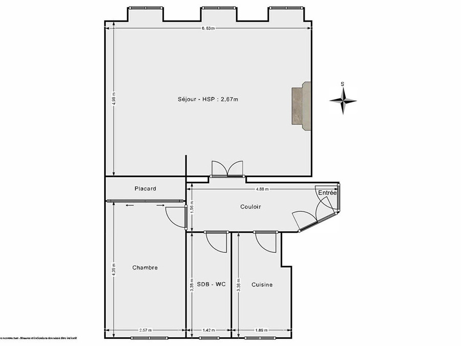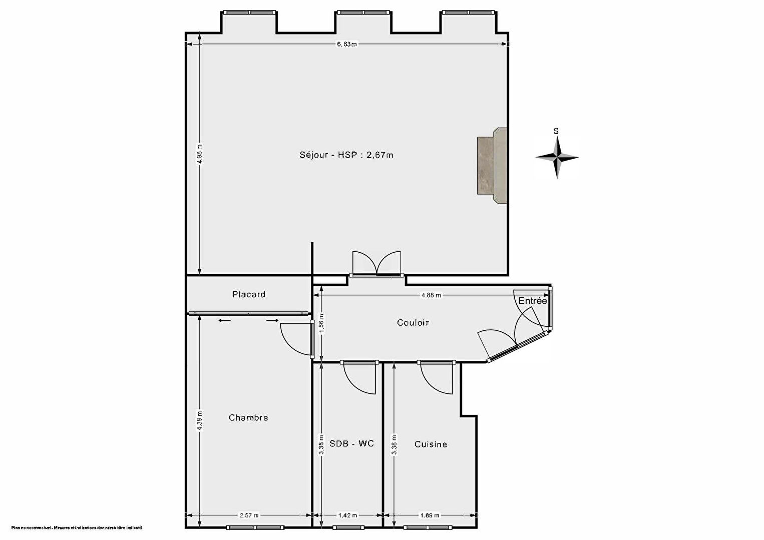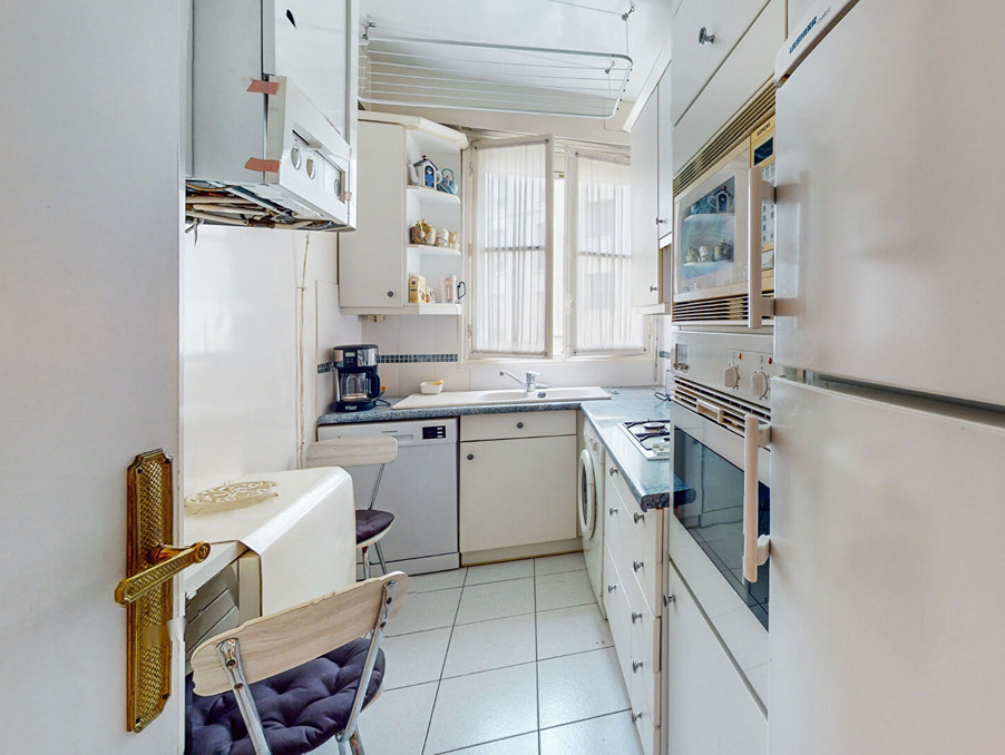 Il se compose d'une entrée desservant un grand double séjour lumineux de 34m², exposé sud, et doté de trois grandes fenêtres permettant d'amener une lumière naturelle tout au long de la journée. La cuisine indépendante, aménagée et équipée, est en bon état, et la salle d'eau dotée d'un WC a été rénovée il y a un an. Vous trouverez pour finir une jolie chambre de 13m², au calme sur cour, équipée d'un grand placard.