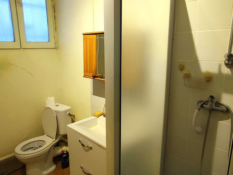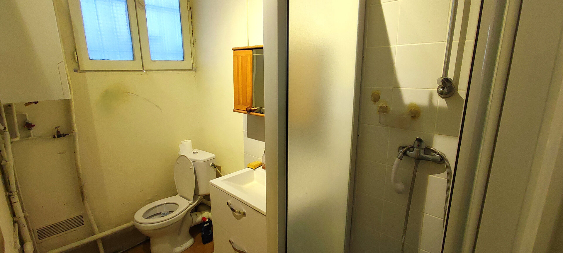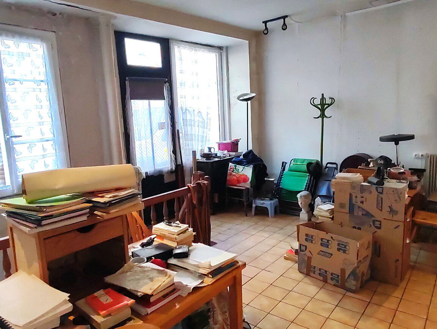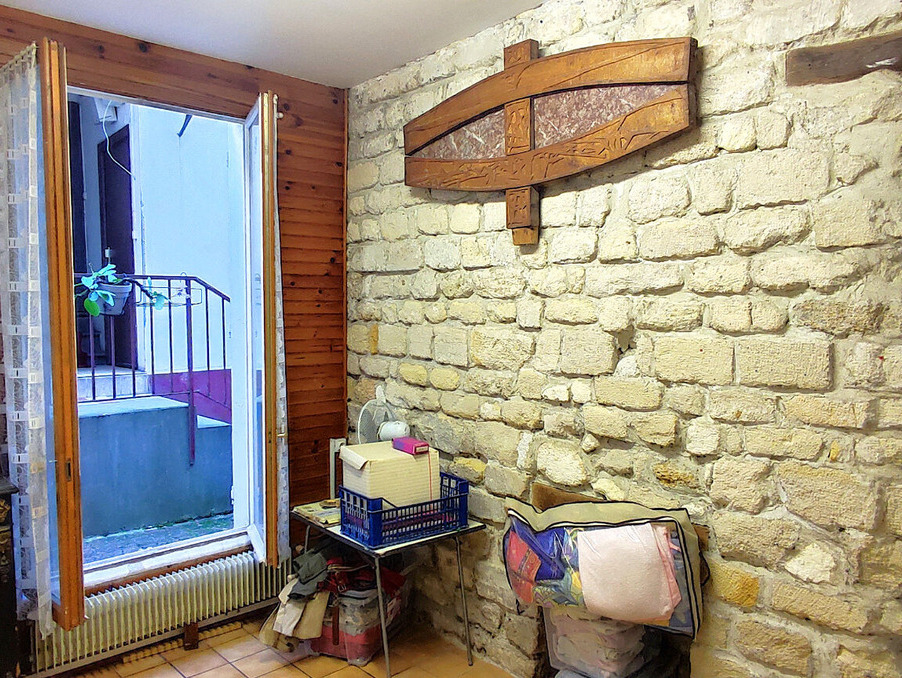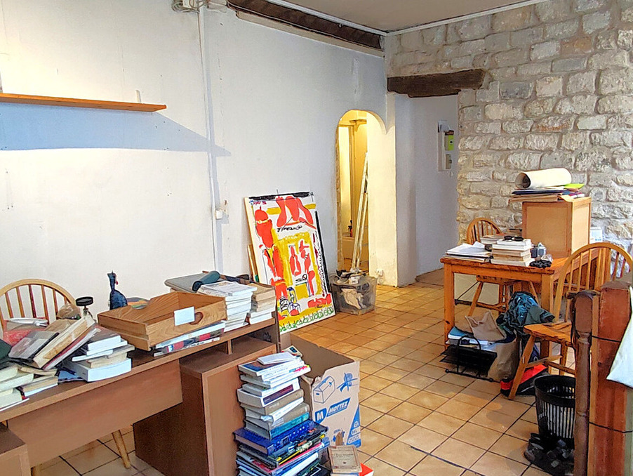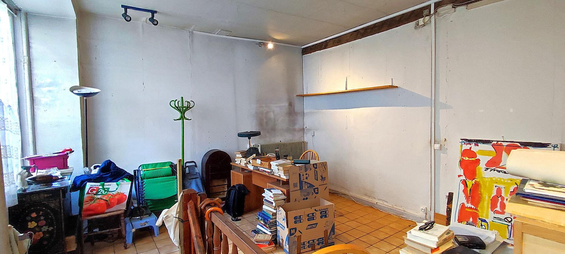 À rafraichir, il possède néanmoins beaucoup de cachet (poutres apparentes et murs en pierres de Paris) et de nombreux atouts : deux entrées distinctes, une accessible directement par la rue et la seconde par les parties communes de l'immeuble, une grande luminosité de part sa belle hauteur sous plafond de 3m20 et ses grands ouvrants exposés ouest donnant sur la cité de la mairie.