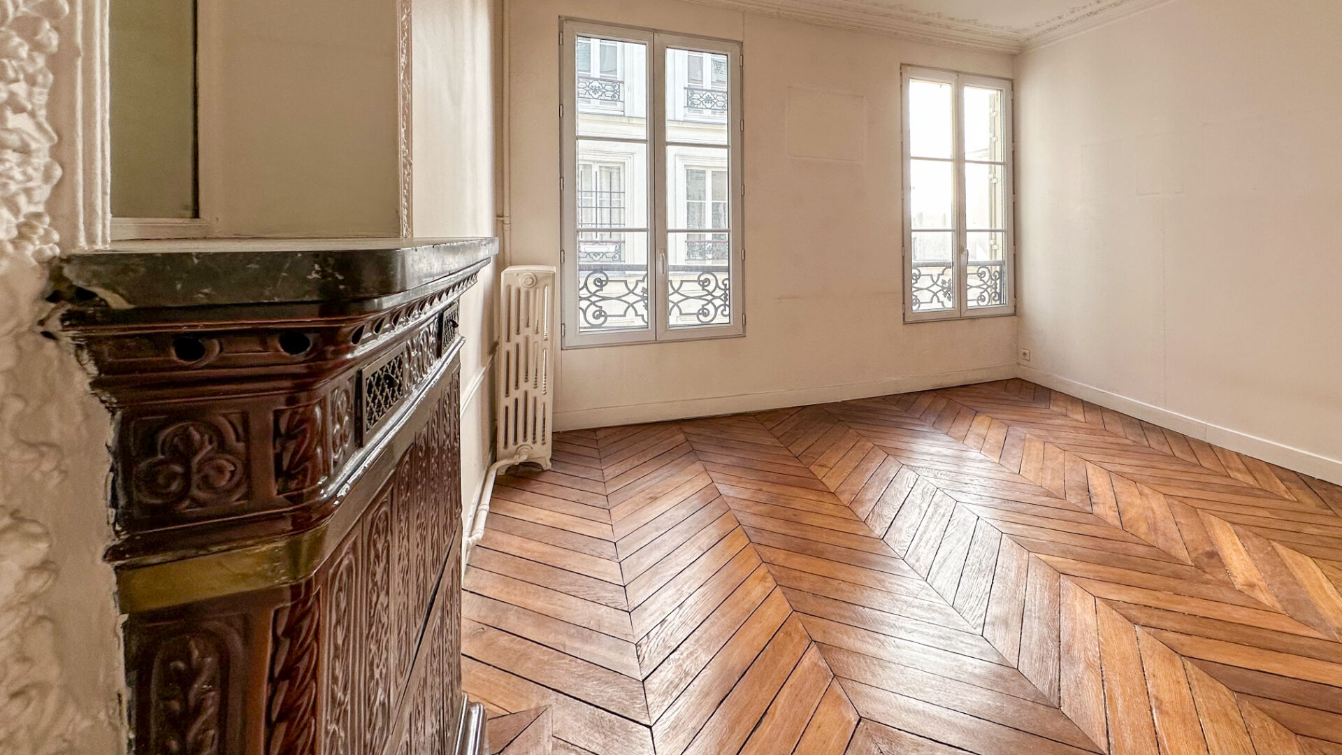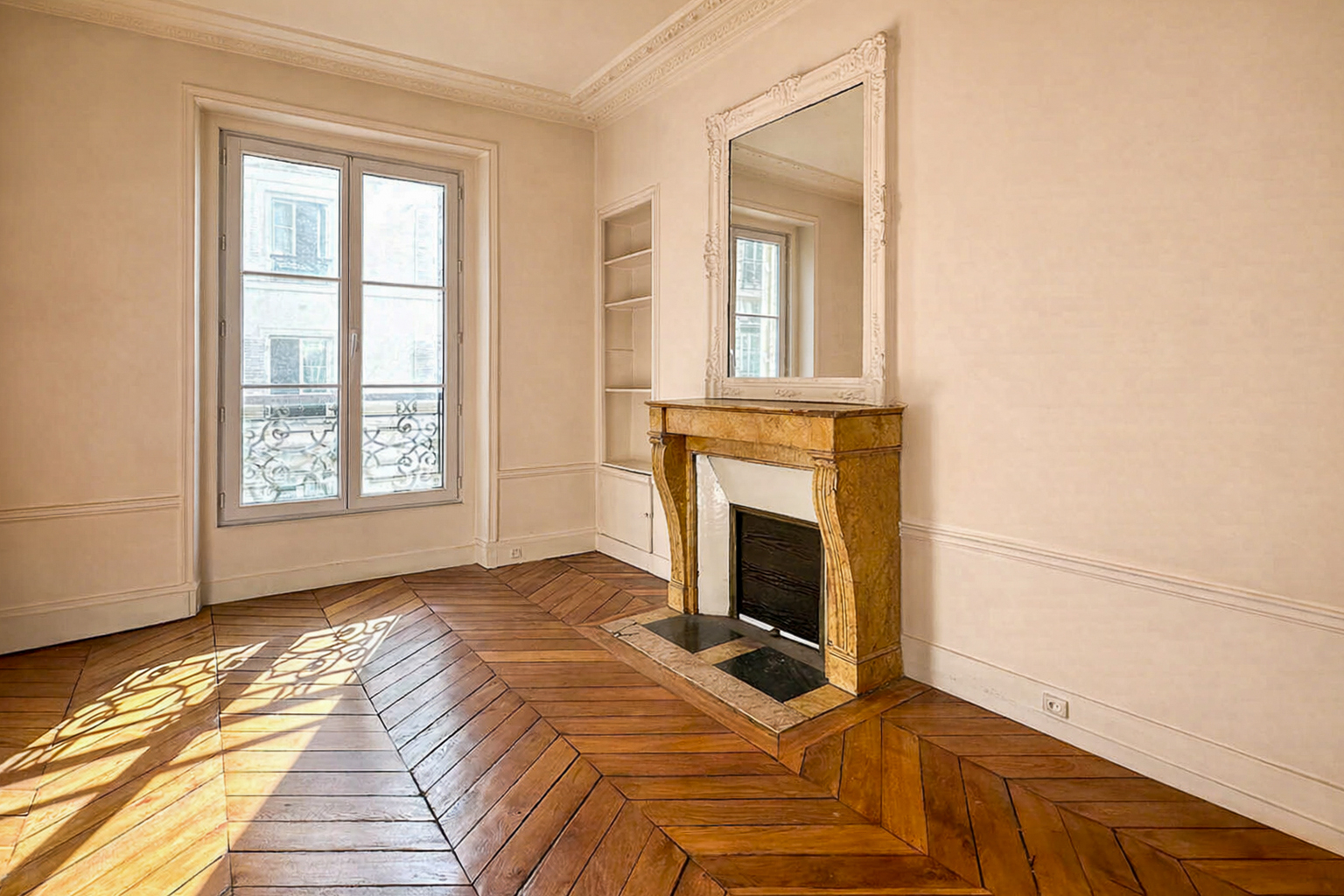 Dès l'entrée, le ton est donné :parquet en point de Hongrie, cheminées en marbre, moulures d'époque, chaque détail a été préservé avec exigence pour offrir un ensemble d'une grande élégance.