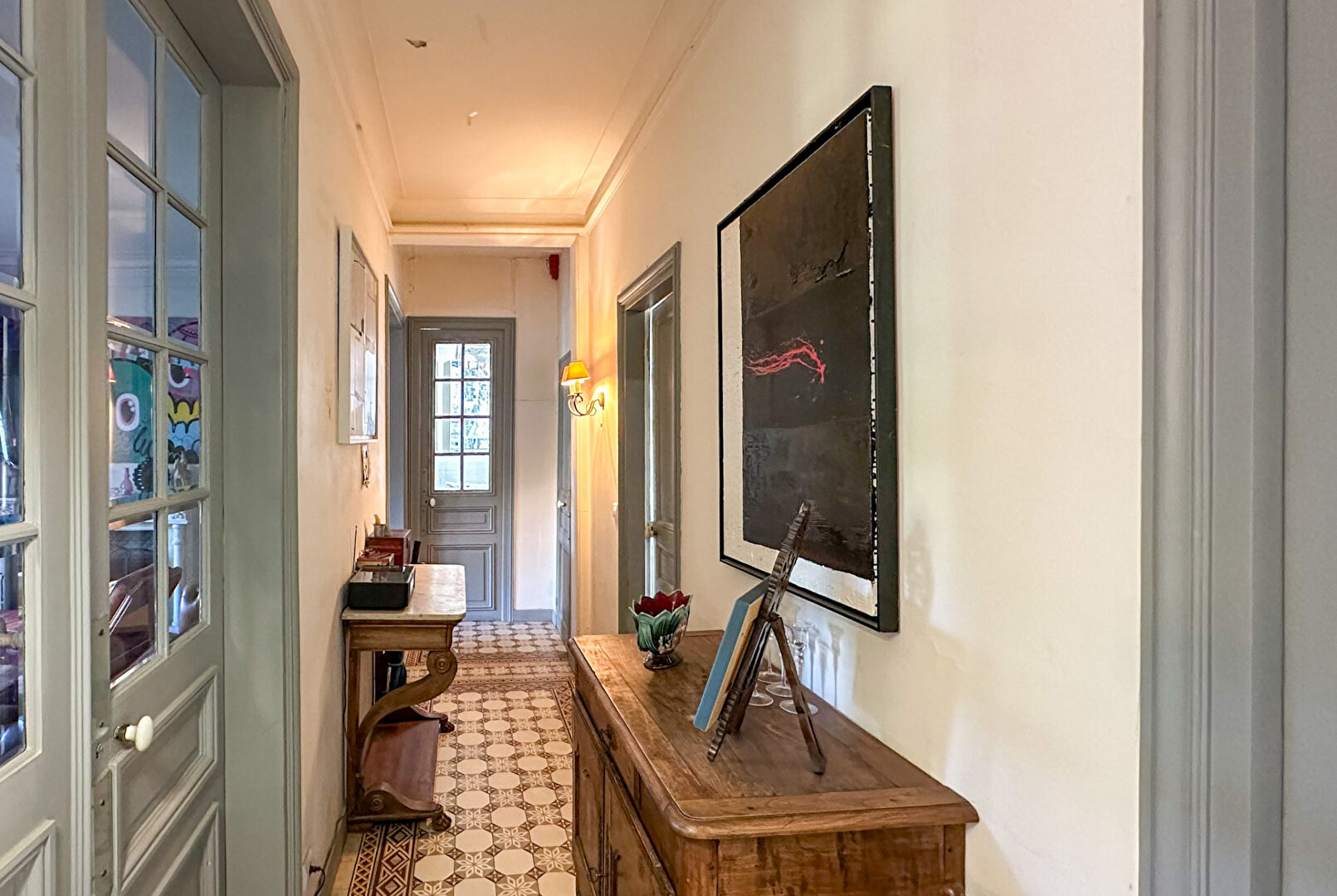 Les pièces de réception, baignées de lumière, dévoilent des volumes généreux et une atmosphère feutrée.
