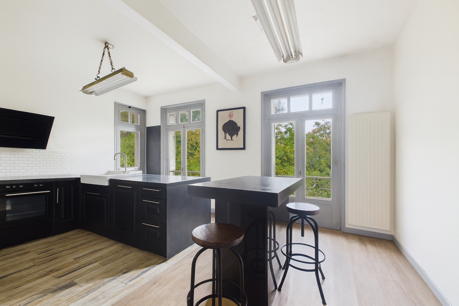 La cuisine, entièrement repensée dans un esprit contemporain, conjugue esthétisme et fonctionnalité, lieu de vie par excellence, où chaque détail semble pensé pour durer.