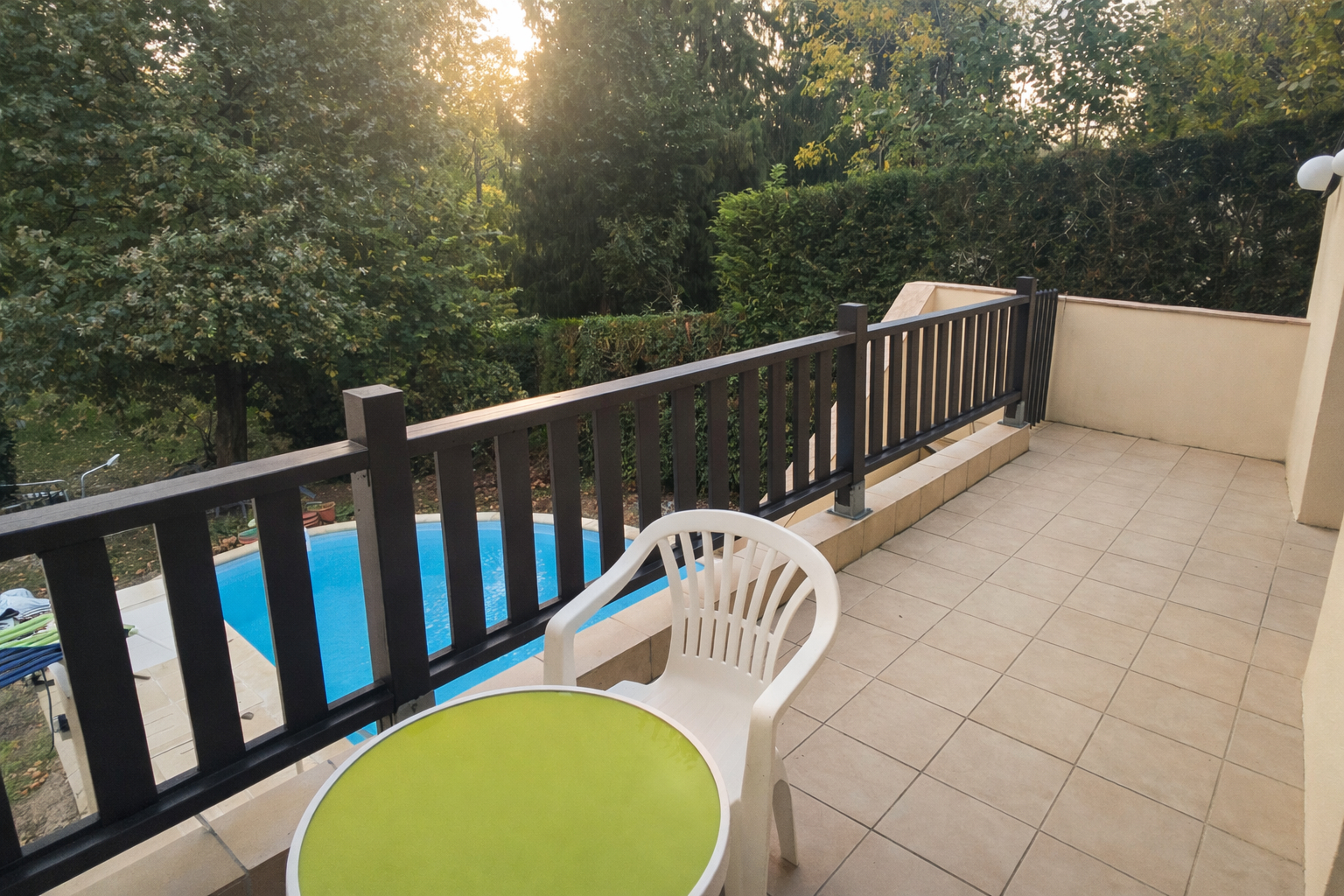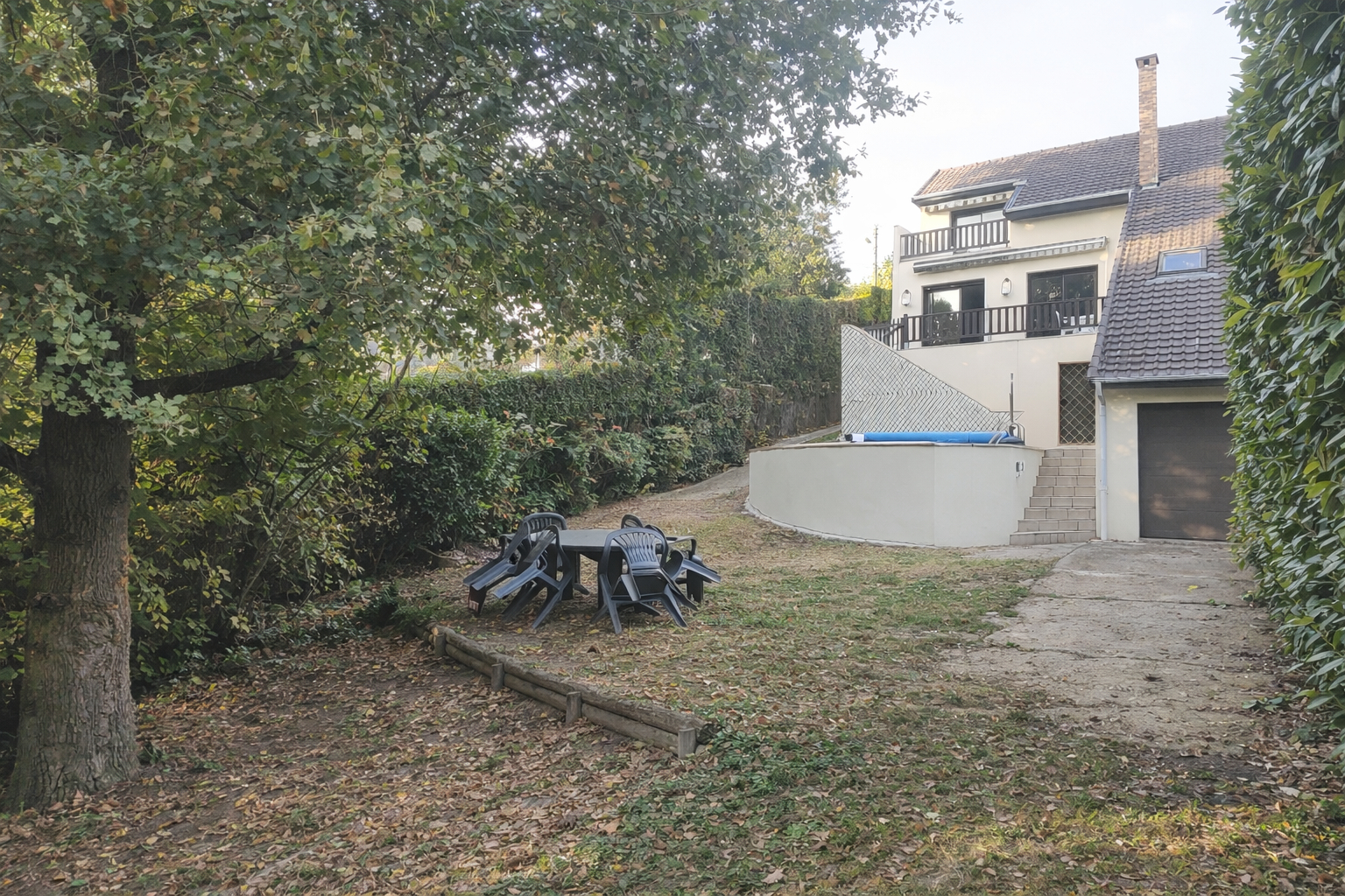 Pour les extérieurs, à l'arrière de la maison, un grand jardin arboré exposé sud ouest est complété par une piscine avec un grand local technique permettant de ranger du matériel.