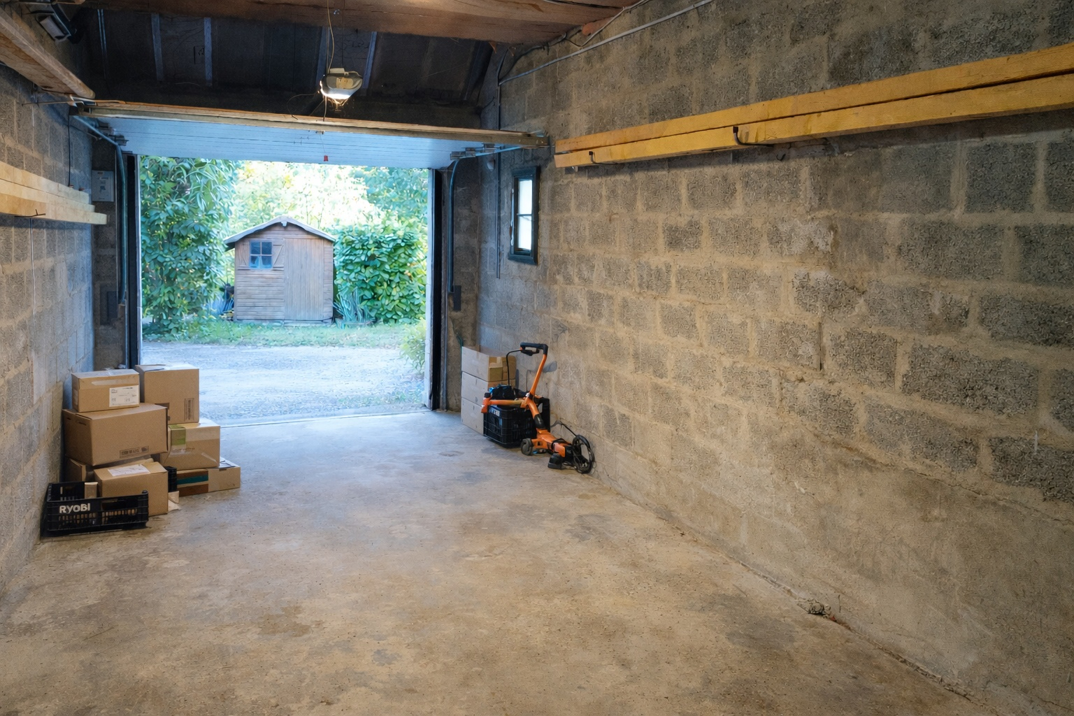 - Au sous sol, un grand garage, une grande pièce pouvant servir de chambre, de salle de jeu ou de bureau, un cellier, une buanderie.