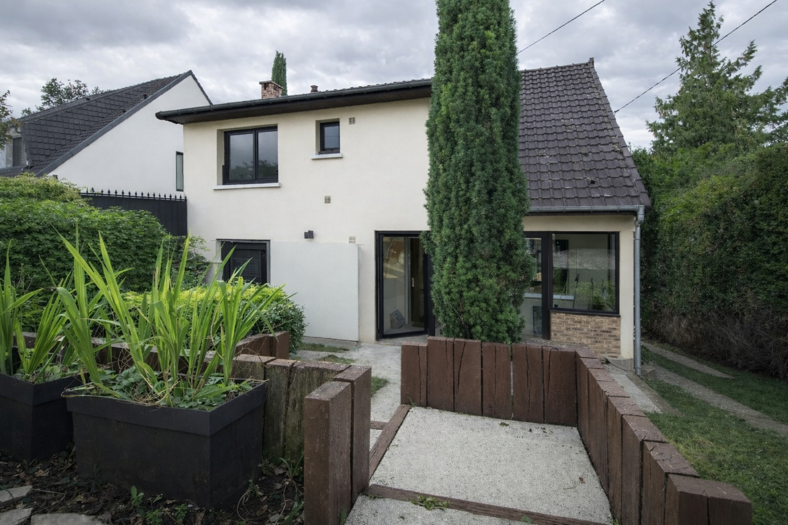 Sur un terrain de 1000 m², à l'abris des regards et du bruit de la ville, elle se compose sur trois niveaux de la manière suivante :