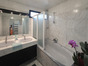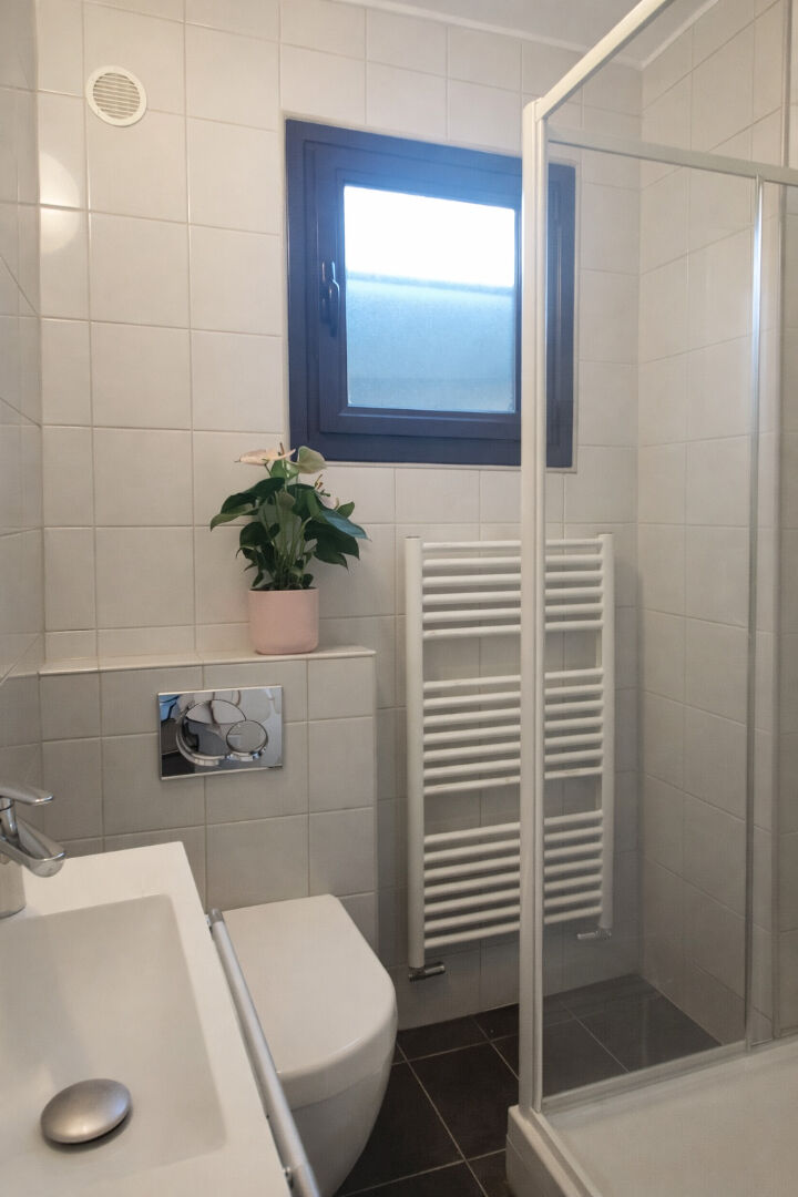 - À l'étage, un palier dessert deux chambres dont une avec terrasse donnant sur le jardin, ainsi qu'une salle de bain moderne avec double vasques et WC.