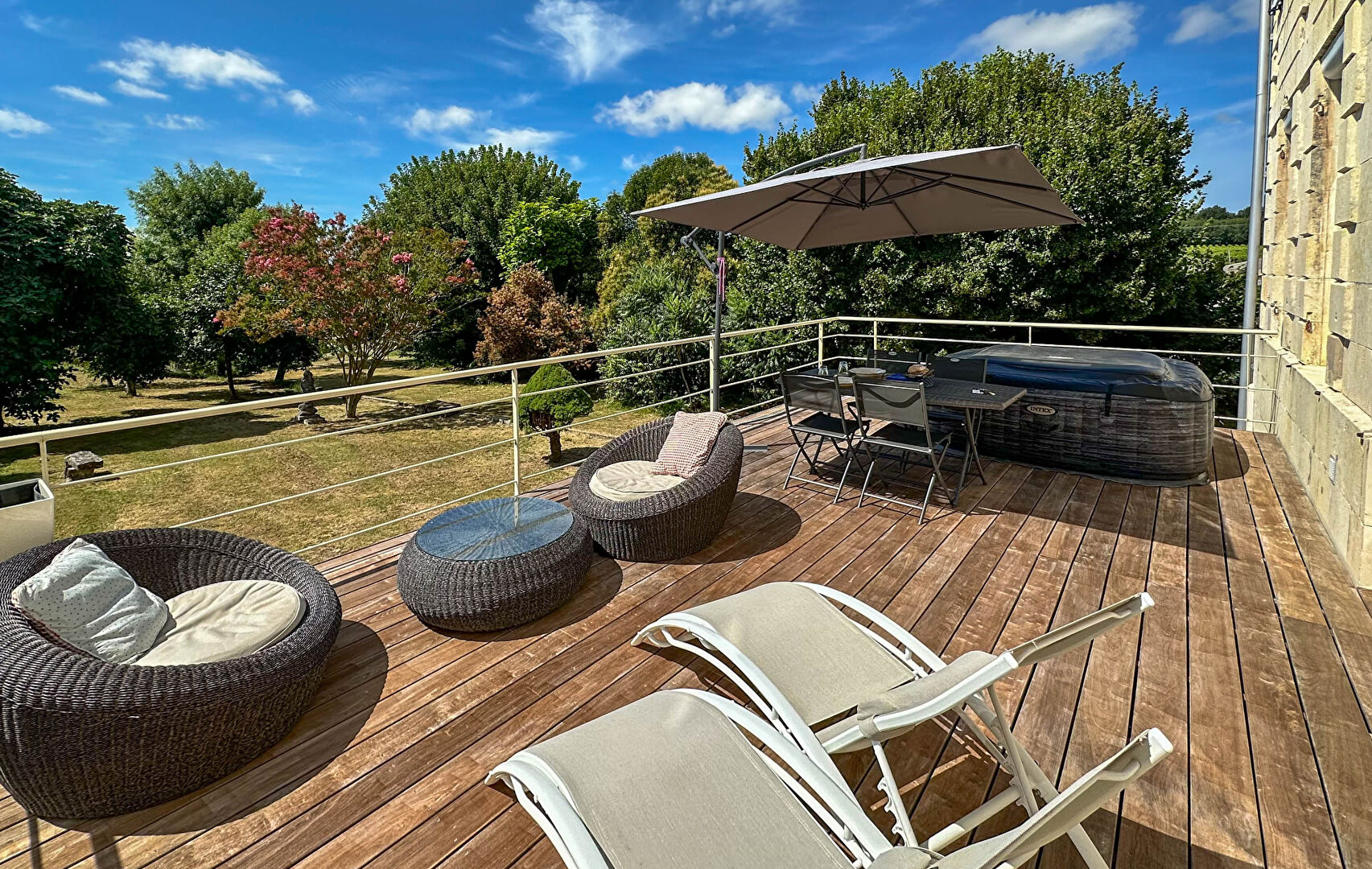 Cette spacieuse maison de Maître de 300m² datant de 1850, nichée sur un terrain privé de plus de 4000m², offre un cadre exceptionnel pour des vacances inoubliables à Semillac. Répartie sur trois niveaux, elle dispose de tout le confort moderne et peut accueillir jusqu'à 10 personnes réparties dans 5 chambres. Vous profiterez d'un grand parc privé, d'une terrasse couverte et découverte, ainsi que d'un jacuzzi pour des moments de détente en toute sérénité.
